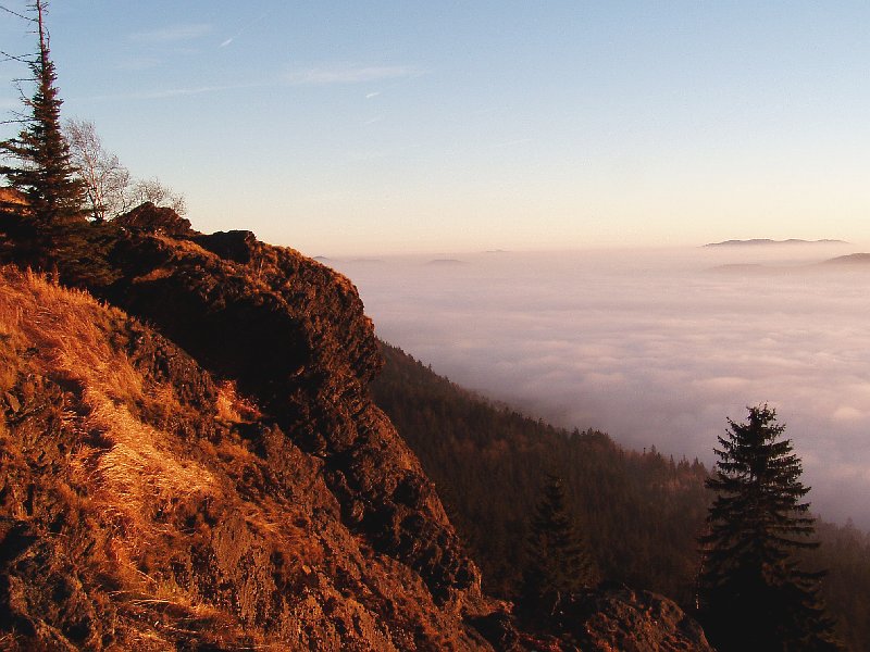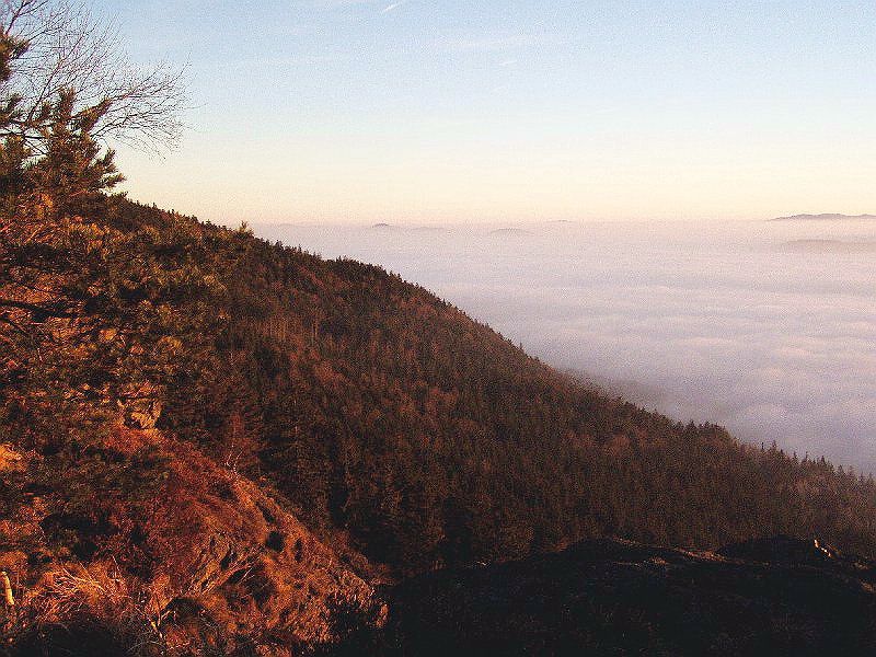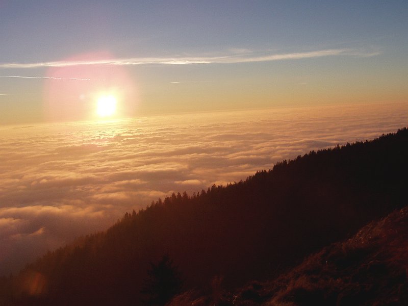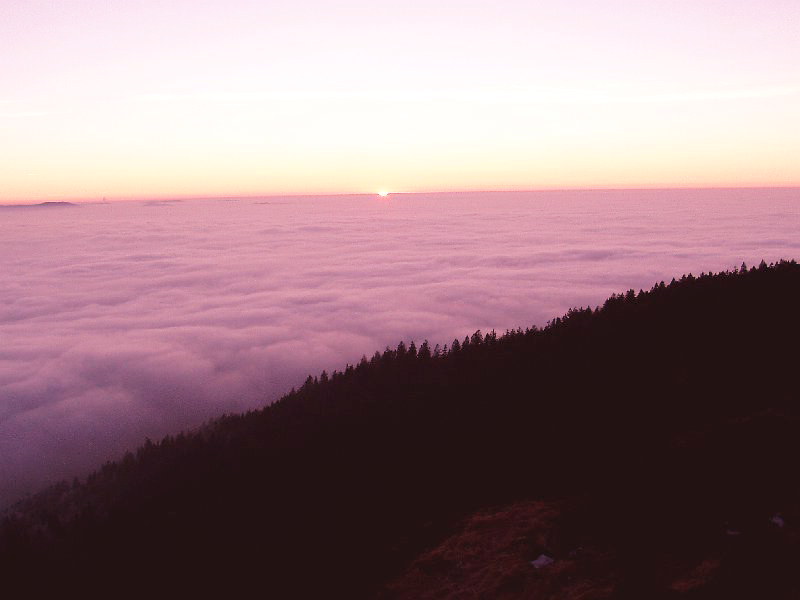 Heut nachmittag 15 Uhr beschloss ich kurzfristig, dem grauen Hochnebel im Tal zu entfliehen und den Sonnenuntergang am Kaitersberg beizuwohnen.