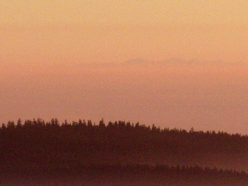 Etwa 10 min vor Untergang war ich auf den Kamm auf 1050 m und konnte Fernsicht bis zu den Alpen bewundern.